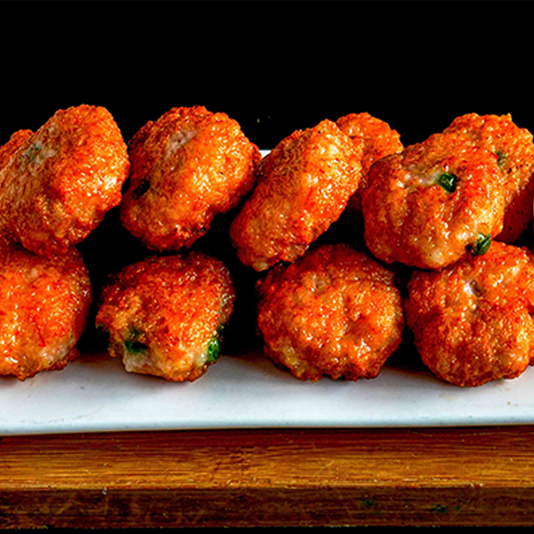 洪武虾饼为凤阳洪武宴席上佳肴。虾饼是以生虾肉、面粉为原料制作的一道菜品。清代文学家袁枚《随园食单》有载:“虾饼,生虾肉、葱、盐、花椒、甜酒脚少许,加水和面,香油灼透。”色呈金黄,外脆里软,香鲜可口。